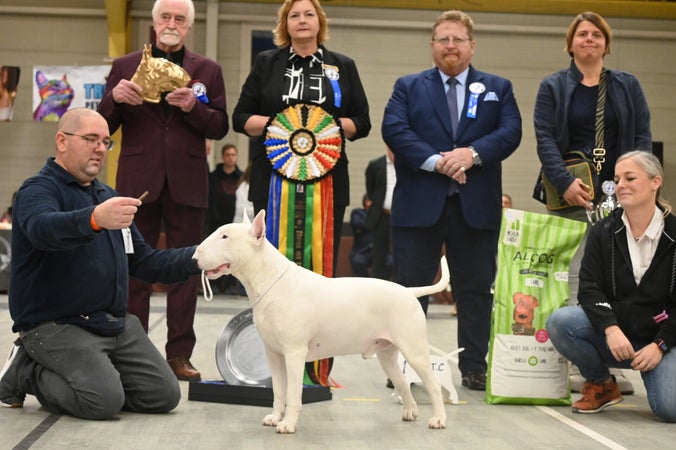 On saturday 9th of September 2023, Skylark's Untouchable Ghost became Best Male and Best Of Breed at the DCBT Bull Terrier Club in Hauptsuhl, Judged by Mrs Penny Sands (Krakenexus, UK). He also got the Trophy for Best Head!!!